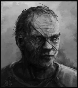He was described as having a wide flat face which seemed to fold in on itself diagonally due to a scar which ran from the right jawline to the left brow.[3] He also had gnarled, bandy legs and jagged teeth.[4][5] Bult claimed in jest that the loss of his youthful beauty had limited him to one blind wife.[6]
