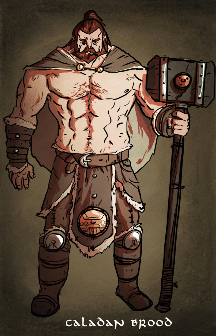 L'oric sought a guardian for Kurald Thyrllan during the absence of his father, Osserc. He considered contacting one of his father's former companions, a list which included Caladan Brood. But L'oric rejected the idea, saying Brood "carries his own burdens, these days."[39]