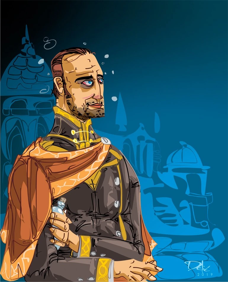 Once again a member of the Council, Coll joined Estraysian D'Arle to represent Darujhistan in the negotiations with the merged forces of Caladan Brood and Onearm's Host. He and Murillio were attached to the combined army for the march on Capustan against the Pannion Domin.[19] Feeling out of place amongst the soldiers, the two men found themselves tending the Mhybe who had seemingly been abandoned by her daughter, Silverfox.[20] The latter had been aging very rapidly by unknowingly taking the life force of her mother, leaving the Mhybe incredibly wizened and frail.