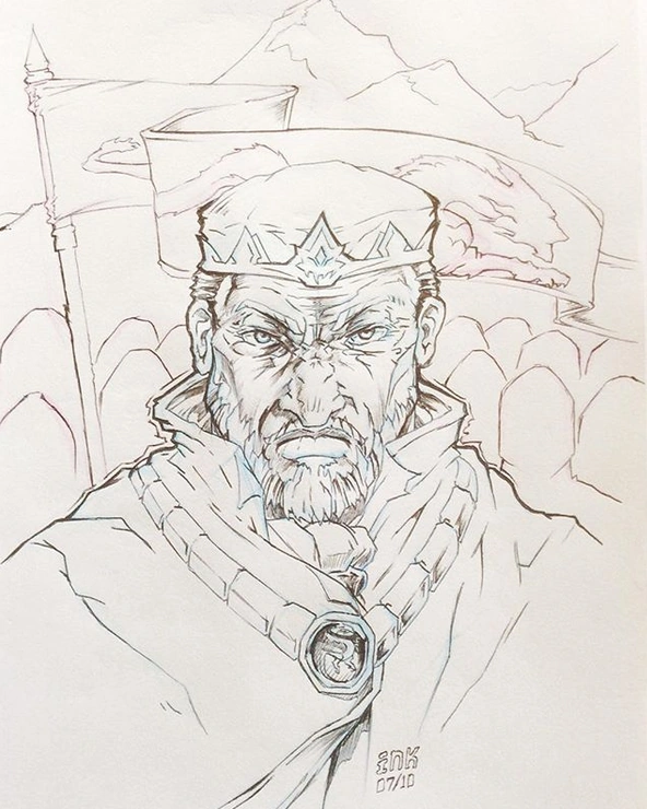 A young K'azz, in the company of his father, the Duke Courian D'Avore, arrived in front of the walls of Li Heng in order to safeguard the Prince of Gris, who had in turn come to hunt and kill the man beast, Ryllandaras.[23]