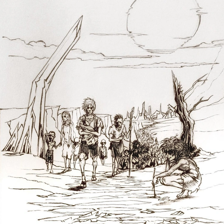 Several groups of child refugees, escaping the ruins of their homelands, encountered each other on the edge of the Elan Plain. One of these was Badalle's group which had come up from the south of the region. The groups merged and the tallest of the children, a boy called Rutt who had come from Kolanse, became their leader by default. The children then followed him through the Elan Plain. Each morning when they set off, they left behind scores who had either died or were too weak to continue, with more of them dying during the march.[1]