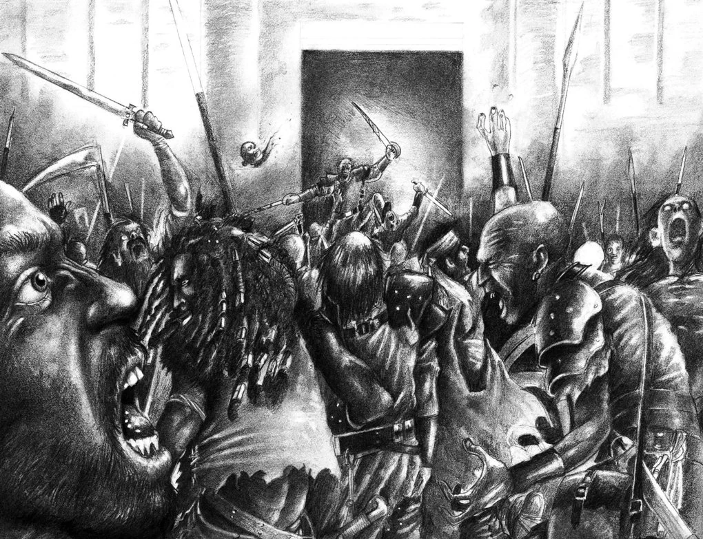 They fought as a frenzied and indisciplined rabble armed with cleavers, knives, and hatchets. They relied on overwhelming numbers to bring down their foes, climbing atop one another in an effort to reach their opponents. Those who fell were dragged away to be devoured by their own companions.[2]